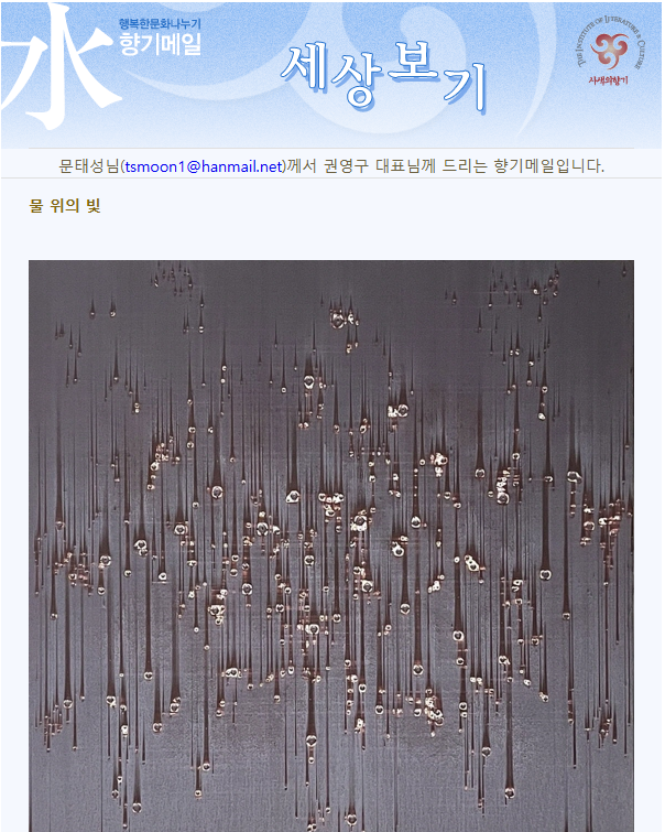 작가가 꾸준히 제작해온 '물위의 빛' 시리즈는 흐르는 강물이나 강가 또는 바닷가에서